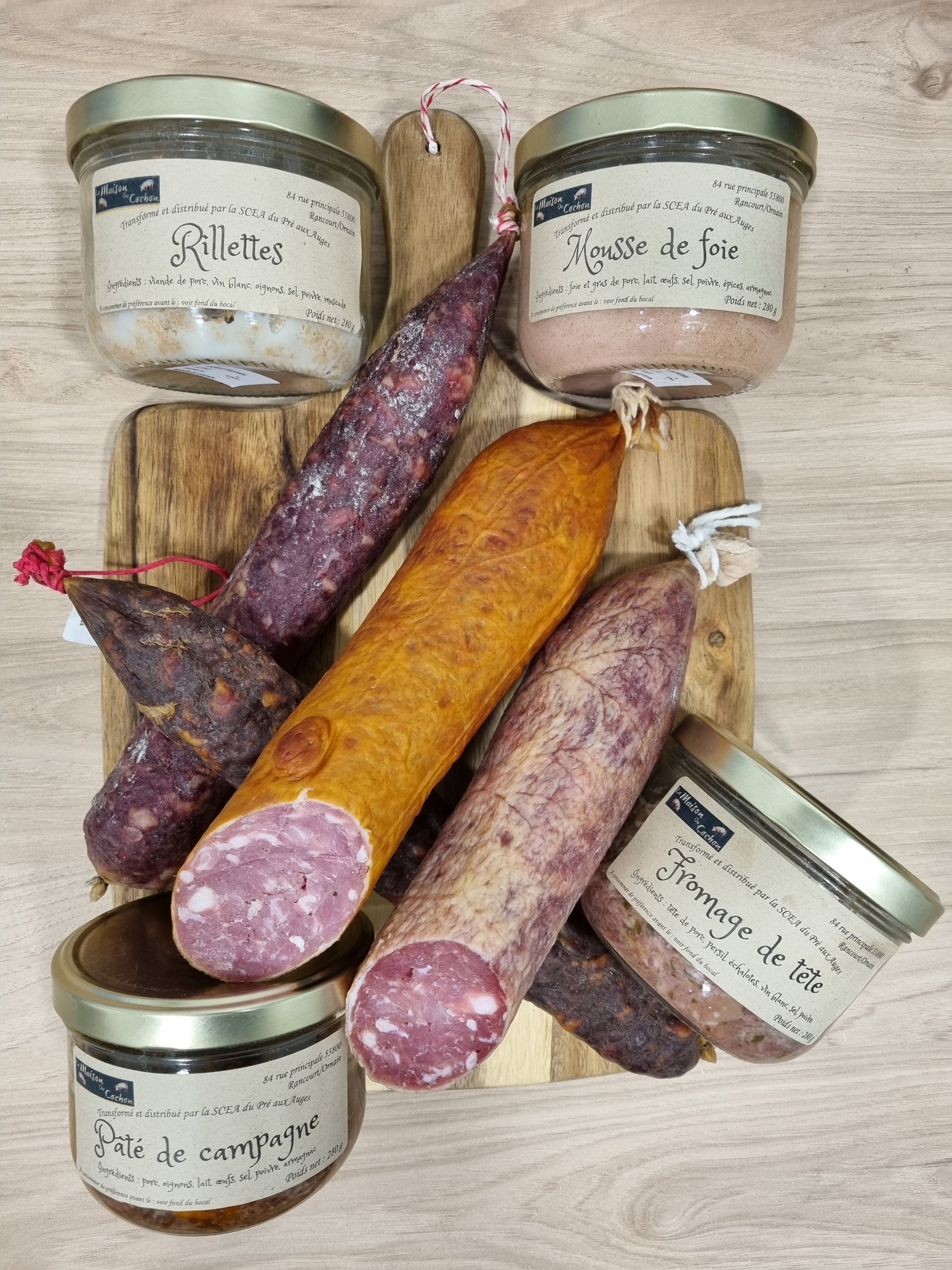 La Maison du Cochon vous propose un colis avec un assortiment de charcuterie composé de :